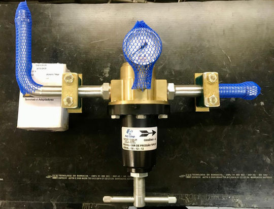 Sistema Anti-Retorno de gases que consiste em acionamento por mola e anel de vedação em viton. Sistema Anti-Retorno de chama que consiste em filtro sinterizado extinguindo o retorno.